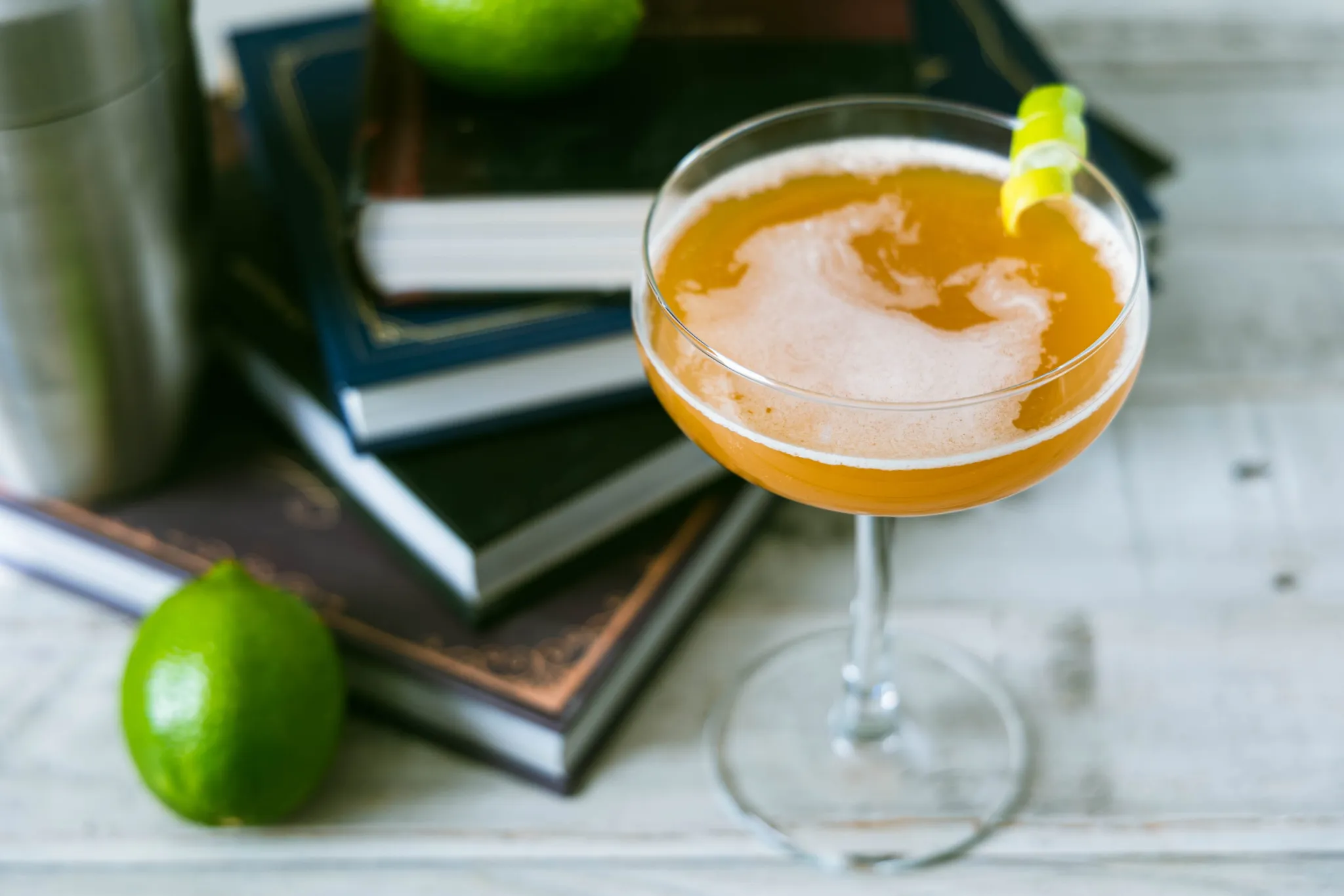 - Ajouter le jus de lime, le vermouth, le triple sec et l’Acerum ambré.