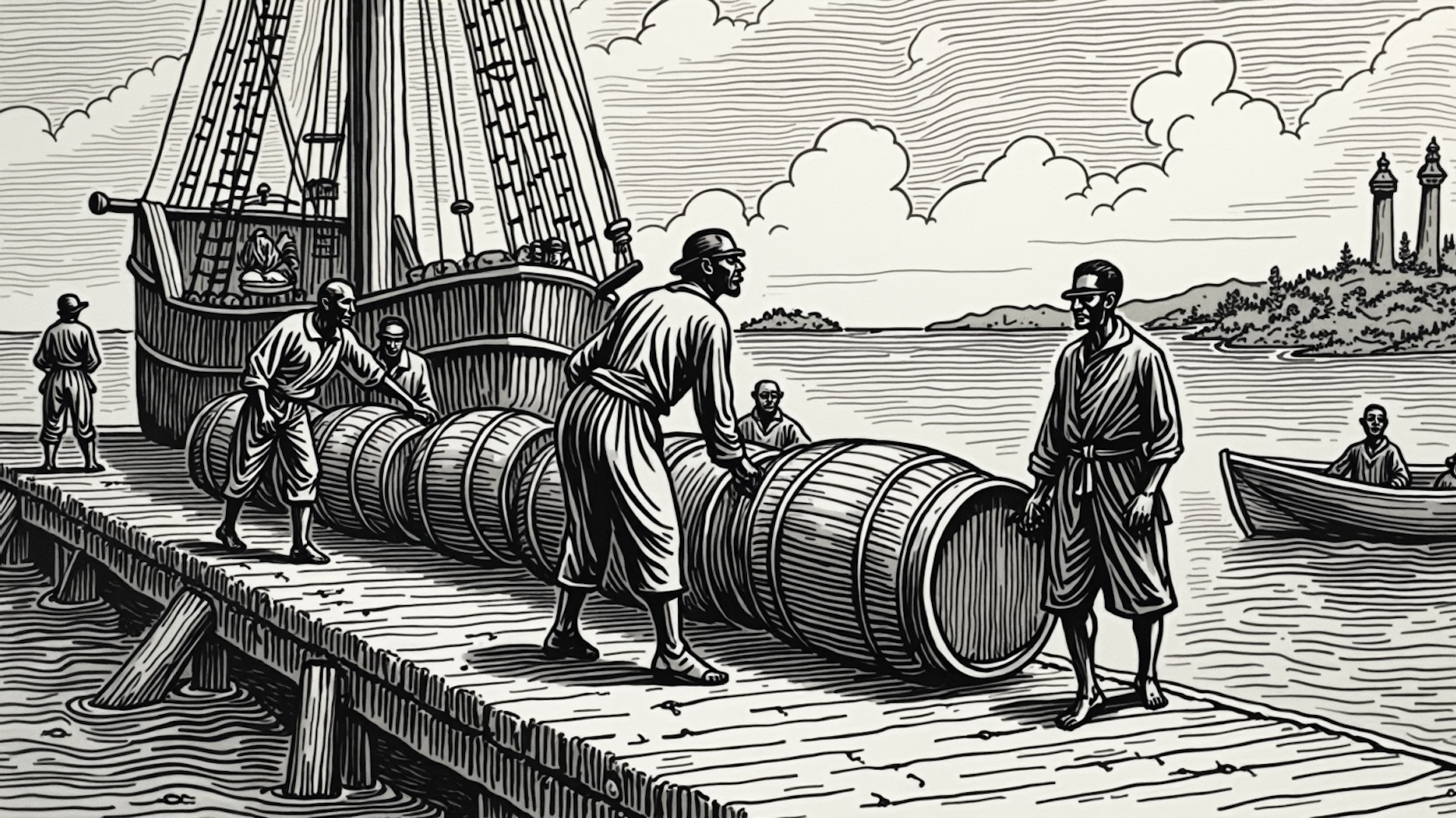 However, intensive sugarcane cultivation produced an abundant and cumbersome byproduct: molasses. This black, syrupy residue, derived from the extraction of crystallized sugar, was initially seen as waste. It was produced in massive quantities (3 kg of molasses for every 4 kg of sugar) and had no immediate use. Due to its low economic value, molasses wasn’t worth exporting by ship—it took up too much space, and Europeans had no interest in it. By the 1680s, reports show that the French were dumping more than 1.5 million liters of molasses into the ocean annually. In tropical climates, where heat accelerated decomposition, its accumulation attracted insects and caused nuisances.