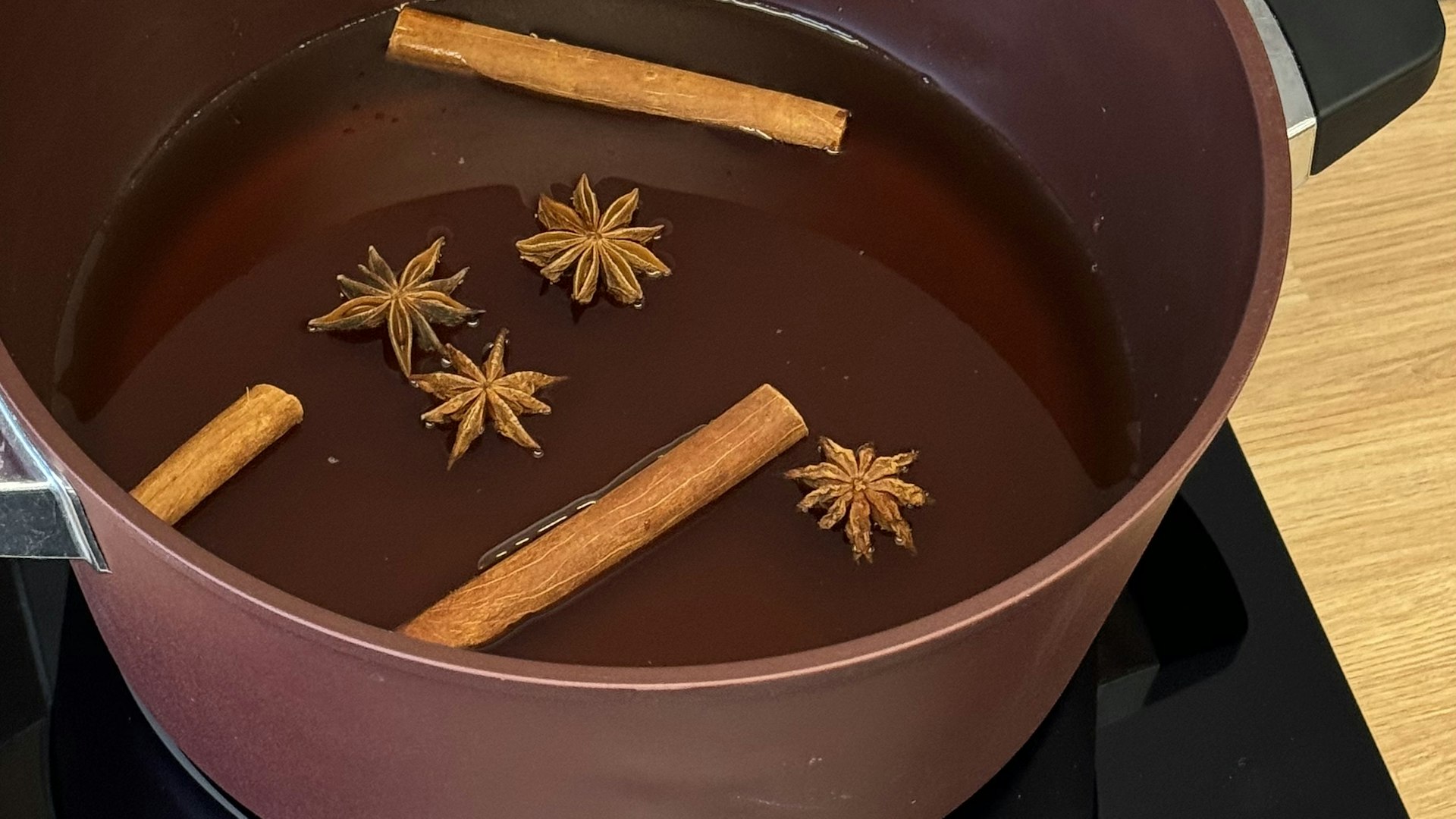 Add the cinnamon sticks, star anise, allspice, and cayenne pepper.